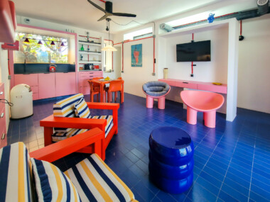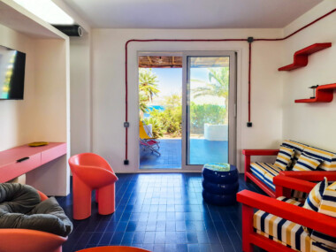 Lors de sa rénovation en 2024, la Villa a conservé son authenticité et renforcé ses lignes directrices rappelant les années 70. Simple et colorée, elle reflète l’ambiance festive typique de ces années-là.