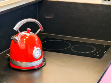 Équipements de base – Réfrigérateur – Cuisinière à induction – Four à micro-ondes – Congélateur – Lave-vaisselle – Casseroles et poêles – Vaisselle et couverts – Verres à vin – Bouilloire électrique – Machine à café – Grille-pain – Blender – Table à manger – Chaise haute disponible sur demande